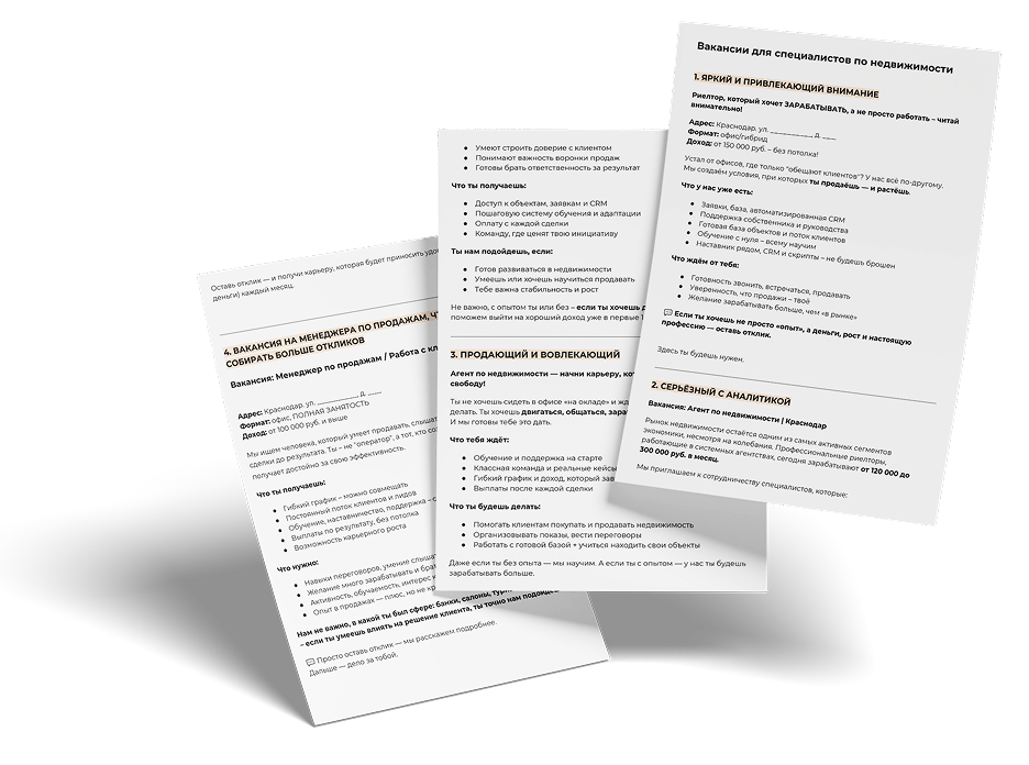 Это трёхдневная обучающая программа для HR-специалистов и рекрутеров в недвижимости. Она поможет выстроить эффективную воронку найма агентов, научит современным методам работы с аналитикой, скриптами и возражениями, а также даст инструменты для генерации откликов и сбора групп на обучение.