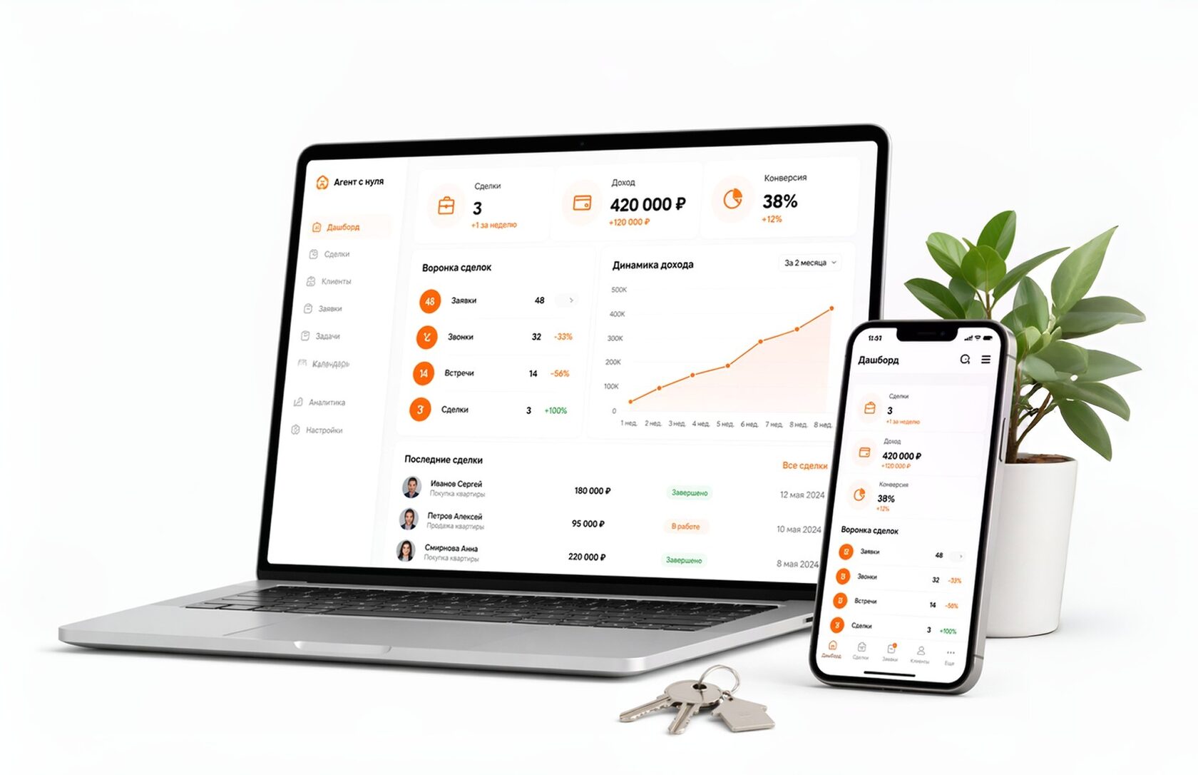 3+ сделок в месяц через систему продаж для агента недвижимости